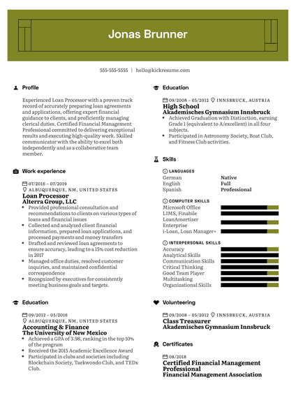 Loan Processor Resume Example Kickresume