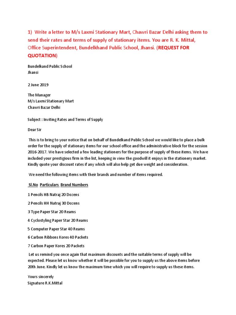 When writing a sample letter of request for materials needed a formal polite and professional manner of writing is needed. Below briefly focus on sample Request Letter for Stationery Items for Employees. An order letter is written by an individual or company requesting for delivery of goods or.